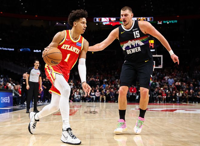 这个球员就是老鹰的杰伦-约翰逊,北京时间2025年12月6日,老鹰主场迎战掘金,杰伦-约翰逊表现给力,只用了16分44秒就达成三双,全场比赛他更是20中9爆砍21分18板16助2断,老鹰上半场完胜掘金,一度领先23分,半场战罢领先19分,本以为老鹰将拿下胜利,没想到上半场13中2的约基奇下半场大爆发,13中11爆砍30分,全场26中13砍下40分9板8助,带领掘金上演大逆转,最终掘金134-133险胜老鹰。
