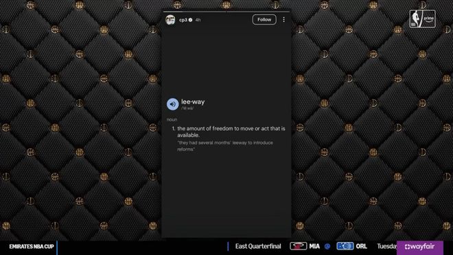 此前保罗在Instagram上曾晒出“leeway”和这个词语的解释,这次社交动态也正是保罗与球队之间矛盾的冰山一角,美国名记Chris Haynes在节目中揭露了真相。
