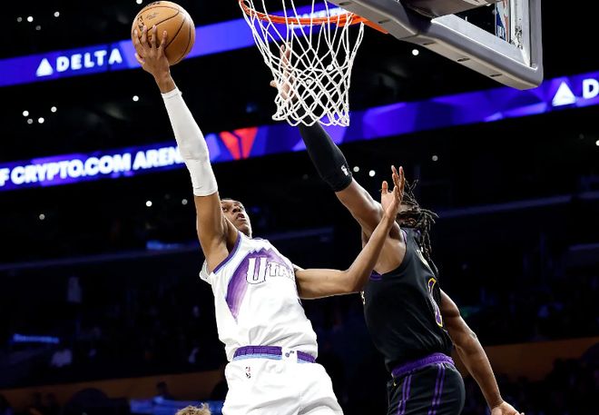 本场比赛中,爵士的替补锋线新星科迪-威廉姆斯(Cody Williams)的表现令人大跌眼镜。威廉姆斯全场出场20分36秒,投篮5中2,三分线外3中0,仅得到了4分1抢断1盖帽的数据,还有1次犯规,正负值也是低到了-14。威廉姆斯在进攻端手感不佳,他在外线投篮方面的感觉并不理想,完全没有发挥出自己在这方面的能力。威廉姆斯在防守端的表现也是令人失望的,同样没有展现出足够出色的防守能力。威廉姆斯在本场比赛中算是被湖人各种打爆了,他的情况实在是太糟糕了,简直是没有任何亮点,完完全全就是辣眼睛的存在。很显然,威廉姆斯的一系列糟糕表现也在一定程度上导致了球队的这场失利。