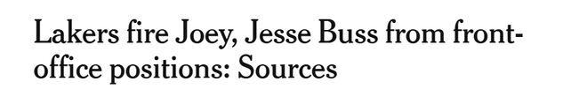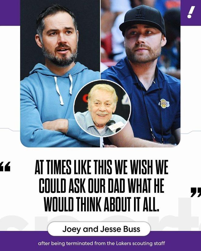北京时间11月21日,联盟消息人士证实,洛杉矶湖人队已解雇管理层高管乔伊-巴斯、杰西-巴斯以及球探部门多名成员。