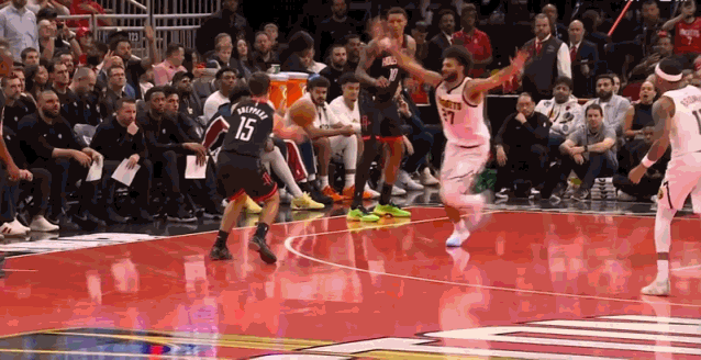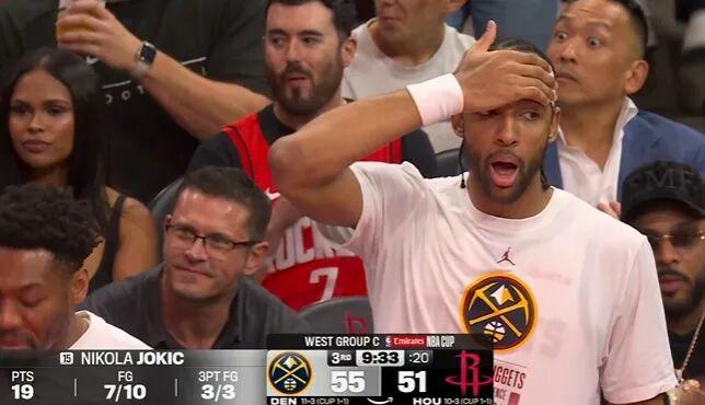 下半场,掘金先手一波11-2的冲击波,打了火箭个措手不及