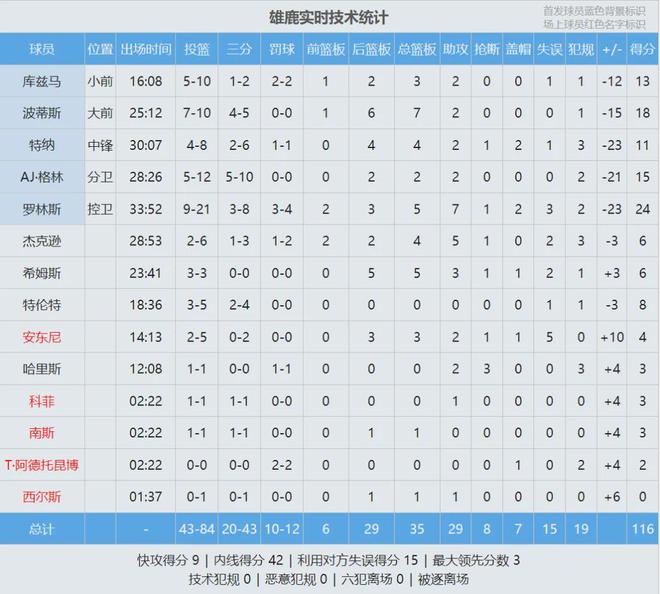 活塞第二节打出一波14比0,分差瞬间来到两位数。上半场打完,活塞69-52领先17分。雄鹿新援特纳如同梦游,半场2中0怒砍0分2板2帽。第三节特纳找回手感,单节6中4得到11分。雄鹿第三节轰下33分,可惜单节净负活塞2分。