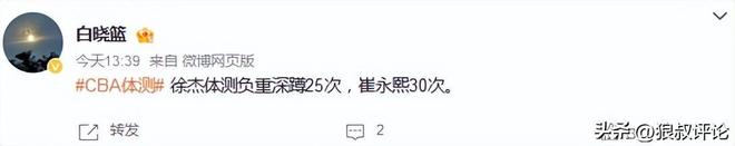 根据《半岛都市报》报道,崔永熙在今年CBA季前体测里表现出色:全场冲刺测试跑出3秒52,与后卫徐杰的3秒45接近;防守滑步测试跑出12秒04,也接近徐杰的11秒65。