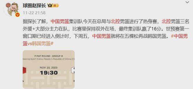 值得一提的是,之前中国男篮照样进行热身赛,对阵CBA球队北控男篮,赢了16分。