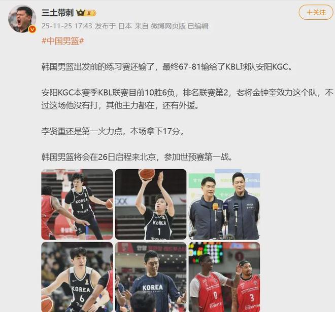 韩国男篮率先公布了世预赛首场的12人大名单,来华之前为找状态和本土联赛球队打了一场热身赛,然后竟然67-81落败,还输了14分之多......如果不是烟雾弹,那可太丢人了。