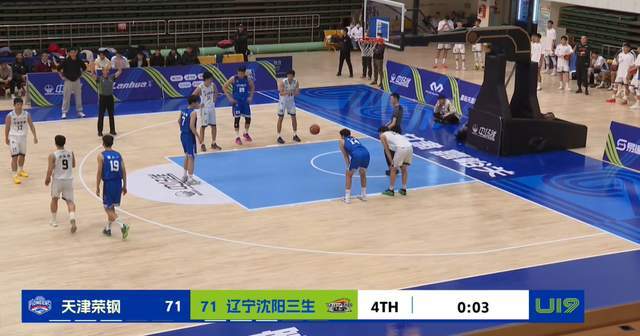 不过,到了第四节,天津U19男篮依旧勇猛,愣是又给追了上来,一度追到63-63平,之后又战成65-65平。辽宁U19男篮随后连续砍分,再次占据了上风。不过,天津队顽强了,在只有12秒的时候,愣是用一记三分球,把比分改写成71-71平,只留给了辽宁队0.8秒。