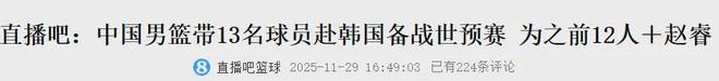 北京时间12月1日,中国男篮将在客场再次对阵韩国男篮,此次会带13人出战,具体如下: