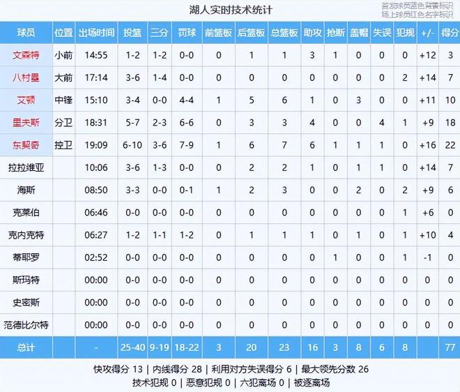 东契奇运球到前场行进间起手造成奎因犯规,才打了6分钟湖人已经罚了9次,东契奇,里弗斯篮下只要出手百分百会有罚球!里弗斯三分不中,回过头来费尔斯利用他的方式造了一个犯规两罚全中,八村塁底角大空位三分稳稳命中26-14湖人领先来到12分,东契奇传球失误鲁尼转换上篮打进,海斯转身抛投也有双方这比赛节奏打得很快,奎因内线转身上篮被海斯打手,两罚一中鹈鹕算是稳住了分差。东契奇利用挡开突破内线上篮命中,回过头来奎因利用身体素质再造海斯犯规,这次两罚都有!东契奇漂移三分命中,奎因内线被断克内克特大空位三分命中,36-19湖人领先来到17分一节不到就要打花了,双方实力差距太大了!回到比赛贝三分命中,海斯、克内克特、拉拉维亚、东契奇携手打出8-0湖人领先来到22分,鲁尼补篮,阿尔瓦拉多三分,东契奇两罚首节湖人46-27领先19分!