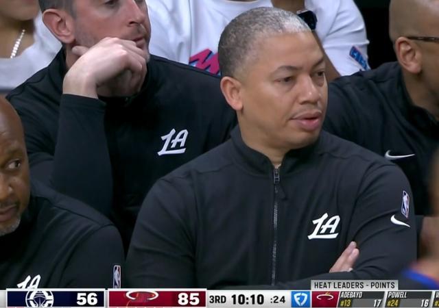 下半场开始,热火的三分雨依旧不停,分差迅速被拉大到32分,泰伦-卢再次叫出暂停,这次他全部摆上第三阵容,第三节打了两分钟不到就提前放弃了比赛。