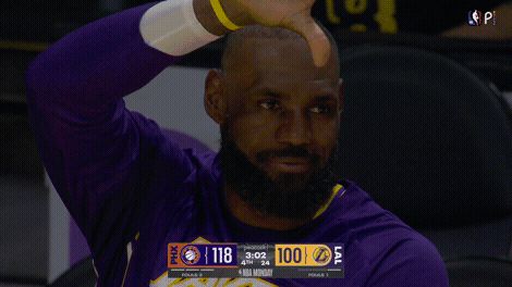 詹姆斯10投3中,刚好得到10分,差点就断了连续得分上双的场次纪录。好在第四节,他终于命中了个人第一记三分,将得分凑够10分,然后才安心打卡下场。