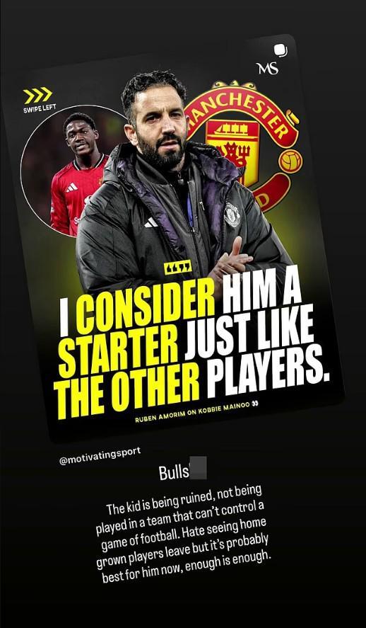 斯科尔斯转发了这一言论,并配文:“胡说八道,这孩子被毁了,在一个连比赛都控制不了的球队里根本没机会上场,虽然不忍心看到本土球员离开,但现在对他来说或许是最好的,够了就是够了。”