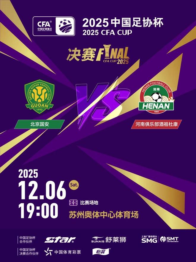 北京时间今晚19点,2025足协杯决赛将在苏州奥体中心体育场打响,北京国安和河南队两支队伍迎来最终对决。