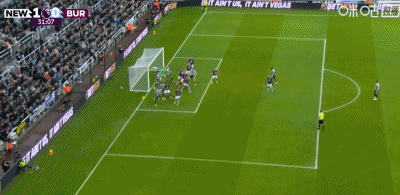 此役主场对阵伯恩利,比赛第31分钟,吉马良斯主罚角球,皮球直接旋进球门,纽卡斯尔联1-0领先。