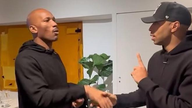 德罗巴握住亨利的手回应:“我不仅戴帽子,还穿球衣,14号的。”