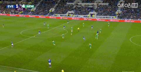 第69分钟,扳回一城,迪尤斯伯里-霍尔停球推射破门,埃弗顿1-4