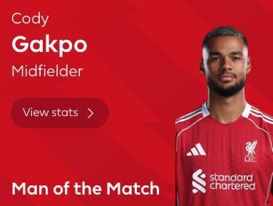 英超第13轮,利物浦客场2-0击败西汉姆联,此役传射建功的加克波当选英超官方全场最佳球员。